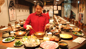 人気のレディース・セットは、"レディース"とは名ばかりに思えるほどのボリューム。美味しいお肉はもちろん、海老や帆立といった海鮮素材に、イカや魚の団子、雲呑餃子に5種類もの茸類、そして、シャキシャキな歯応えで健康への効果も大きなゆりのつぼみが嬉しい。"美味しい、安い、デリケート"のモットーに、女性が喜びついついいつもより箸を進ませてしまう姿が容易に想像できる。