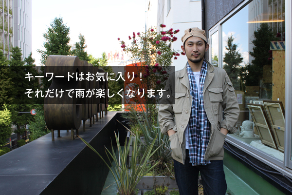 「確かに雨は憂鬱です。が、雨の日にしか使わない特別なアイテムを1つ持つだけで、思いのほかテンションは上がるもの。例えば、傘。手軽なビニール傘を卒業して、お気に入りのモノを1つ持ってみてください。それだけで、朝玄関を出るときに傘を手にするのが楽しくなりますから。さらにお気に入りゆえに大切に扱い、無くす確立も激減します」。