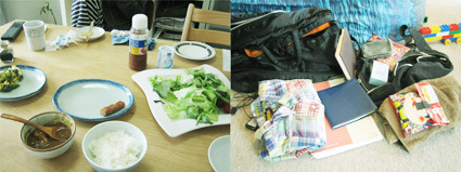 出発の朝に諸々の準備。前日は取材やら原稿書きで終電で帰宅、疲れて寝ちゃったんです。ちなみに朝ご飯を食べながら、今回の出張はただレポートするだけじゃつまらないので、全部ヒラノ目線で写真を撮って、それを日記形式で書こうと決めました。というわけで、思い立ってすぐ朝食から撮影。準備した荷物も撮影。最後までどのカバンで行こうか迷ったんですが、結局10年選手のポーターのタンカーに。大きさやポケットの数、そのた色々考えてもやっぱり使いやすい。慣れた道具が一番です。
