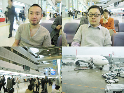 ことの始まりは同僚のヒデさんが“7(セブン)”の田村さん経由で今回の“8”レセプションをフイナムでなんかできません? って声をかけてきたのがきっかけ。最初、ヒラノはレセプション自体は東京でやるもんだと勘違いしてて、「あーオレも行きたい!」なんて軽〜く言ってて、よくよく話を訊いたら福岡で…ってことだった。でもイベント的に面白そうだったし、なにせ福岡に行ったことがない! そんなこんなで私的な部分もまぜまぜで強引に参加となったのでした。こんな感じで出発前までに、フイナムやらその他の仕事を超特急で無理繰り終わらせてなんとか当日の朝を迎えました。