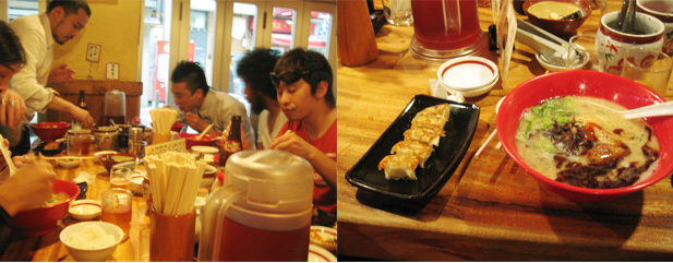 “8”を後にして、大名にあるショップをブラブラ見つつみんなでお昼ご飯。なんだかんだ行ったのは「一風堂」。東京でも食べれるじゃんと思いつつもかなり美味い。あと店員さんが、ランチだとご飯が付きますよ! 餃子は? ビールは何本? と頼んでもいないのに、ガンガン勧めてくる。このあたりから「お酒」が入ってきて後半は大変なことに……。