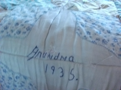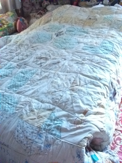 クローバーがあちこち刺繍されているので、多分、アイリッシュ系の家庭のお布団。