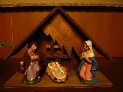 30年以上前から、クリスマス時期になると飾られる「ベツレヘムの馬小屋」「マリア」「ヨセフ」「飼葉桶に寝ているイエス」です。