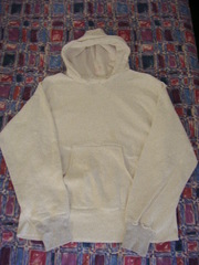 (リバースウィーブの後付けパーカは全て、ボディーとリブの間にフードを挟んで縫い付けられていますが、さらに年代の古い、初期の後付けパーカは、ボディーとリブの間ではなく、ボディーに直接フードが縫い付けられています。)
