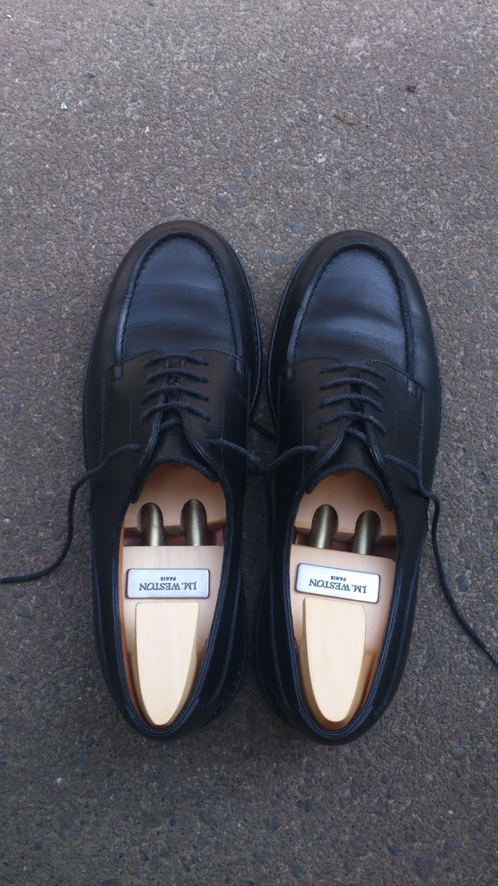 June brideという言葉があるように、6月は結婚式の多い月だったりします。先日も知り合いの結婚式がありましたが、生憎の雨。それもかなりの雨量なんですね。こんな日にはエドワードグリーンとかジョンロブとかは履きたくない。そんなときに活躍してくれるのが、J.M.WESTONのゴルフこと641。14年前にフランスワールドカップ 日本対アルゼンチン戦を見に行った際にサンジェルマン デプレのお店で購入しました。観光客でごった返しているシャンゼリゼ店よりもゆっくり買い物できたのを覚えています。