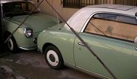 ところでこの友人は以前から変わった車に乗っていた。いや、車が変わってると言うより乗ってるヤツが変わってると言った方がいいかも。ともかく、それは日産の「フィガロ」という車で、1991年のたった一年間のみ生産された幻の車だ。バブル景気の中、日産自動車が非量産性をコンセプトに生み出したパイクカーシリーズというのがあり、Be-1、パオに続いて発売された三兄弟の末っ子である。三台とも1000ccエンジンなど基本的なベースは日産マーチだが、フィガロだけは唯一ターボ搭載(マーチターボ)で走りはそこそこだと思われる(あくまでそこそこ)。