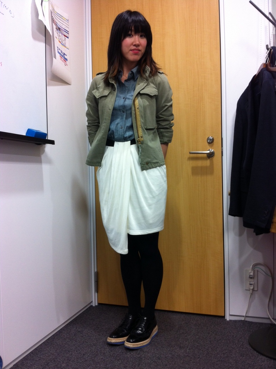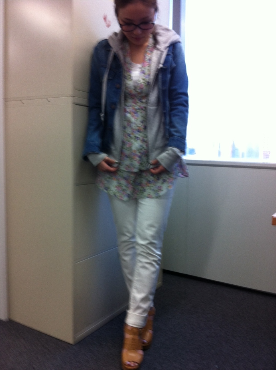 パーカーも、ホワイトデニムもリーバイスです