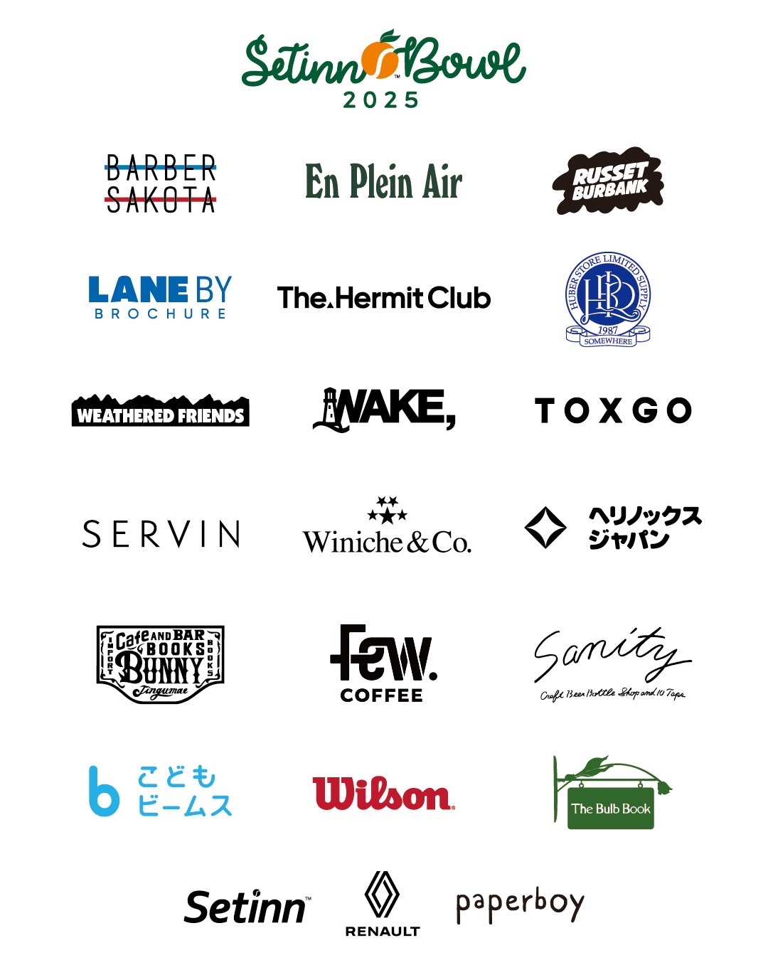 BARBER SAKOTA, En Plein Air, Helinox, Huberstore, LANE BY, Paperboy, RUSSET BURBANK, TOXGO, THE▲HC, WAKE., Weathered Friends, Winiche