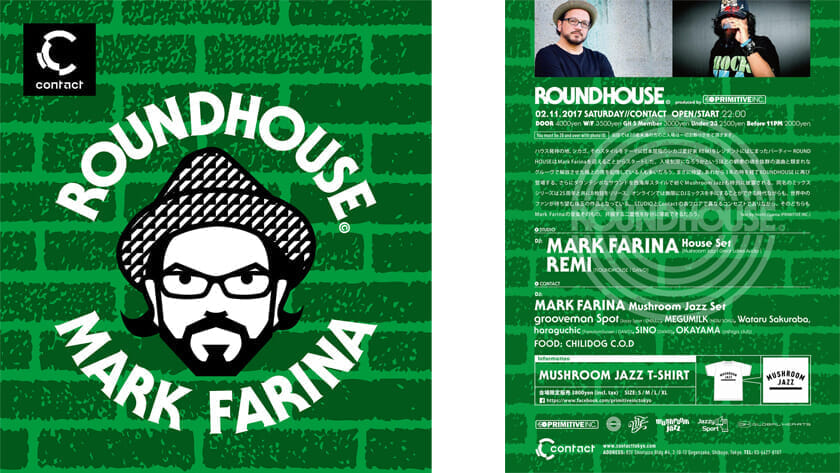 ROUNDHOSE" party will be held again after a lapse of three years. With "HOUSE SET" and "MUSHROOM JAZZ SET", there is no way you can miss this one. Let's meet at the venue!