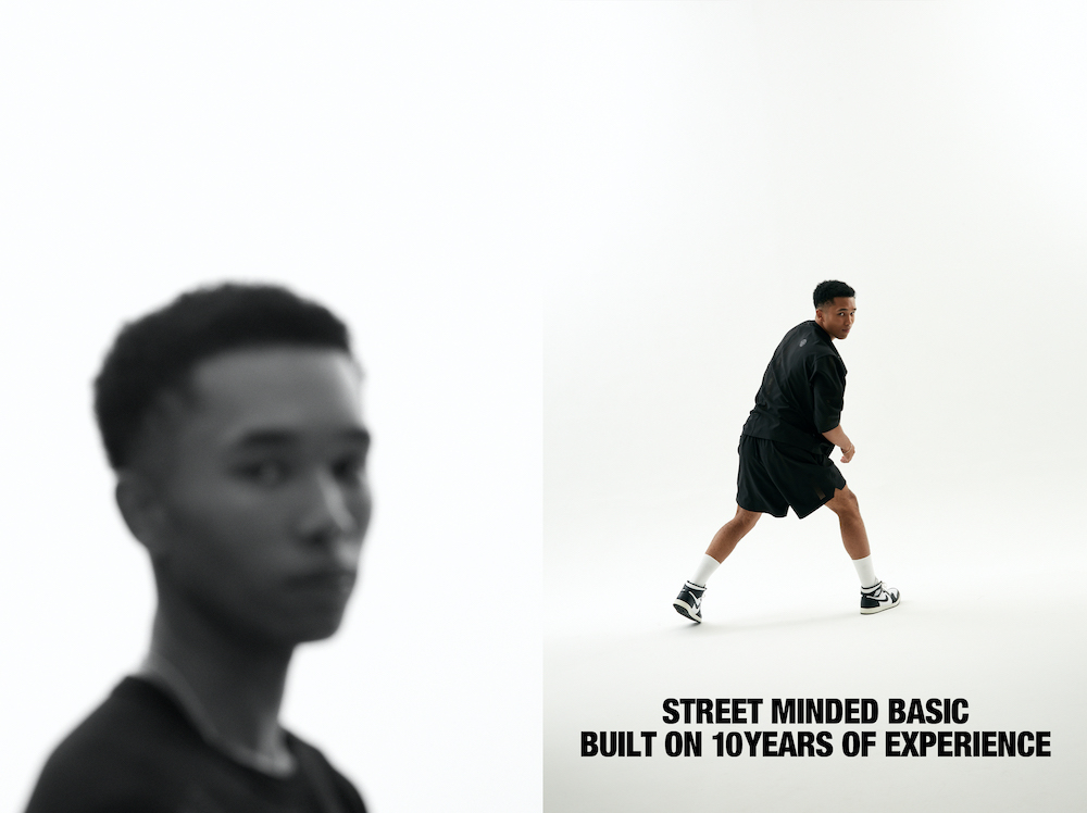 The collection includes standard box T and wide cropped pants, as well as new jogger-type track pants, loose-fit shorts, tank tops, and quarter sleeve T. The material used is a dry-touch polyester woven fabric. The fabric is functional yet beautiful with its fine plain weave and fine luster.