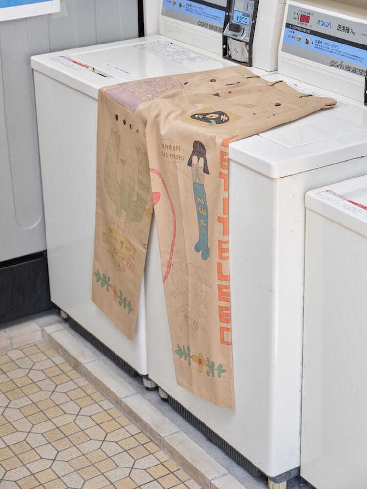 The "New Memory Pants," which are hand-painted on vintage pants by two artists, will be on sale at Ohashi Kaikan.