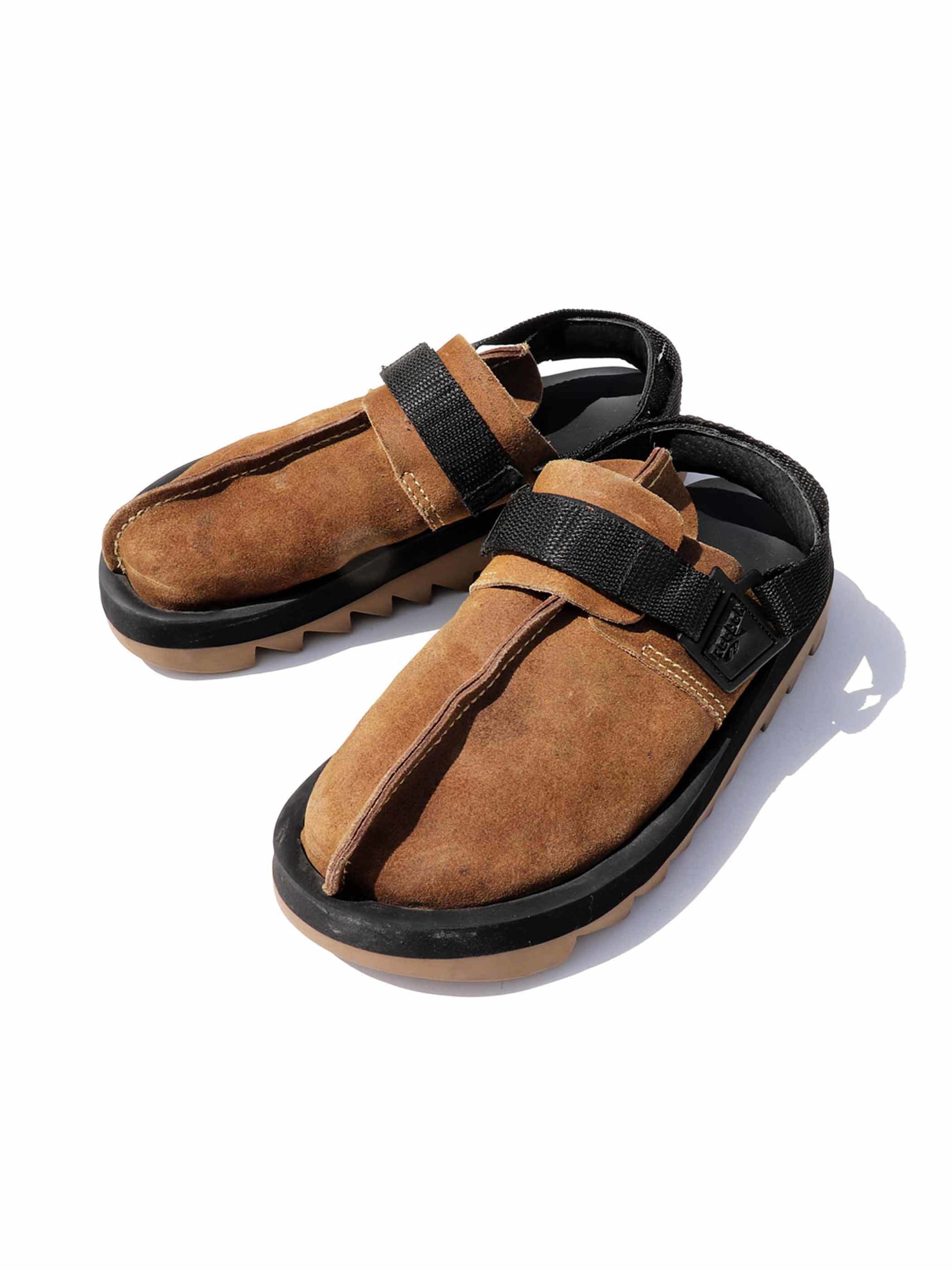 アーティスティックな3Dニットを合わせたプーマのスポーツサンダル。