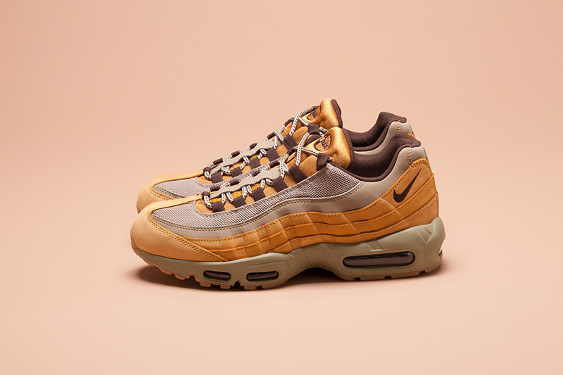 誕生から20周年を迎えた不朽の名作。 様々なブランドが矢継ぎ早にリリースしているハイテクスニーカーの中で、誕生から20年を経た今でも色褪せることなく、むしろその完成度の高さに改めて注目が集まっている〈ナイキ〉の名作、エアマックス95。そんなアニバーサリーイヤーにリリースされたのは、アッパーにヌバック素材をあしらったプレミアムモデル。リッチなゴールドのグラデーションアッパーが、これからの冬シーズンにぴったりです。〈NIKE〉シューズ ¥16,000+TAX