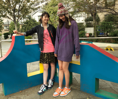 〈ナイキ〉フーディ ワンピース¥7,245、シューズ¥16,800、〈ビームス ボーイ〉ニット帽¥6,090(ビームス ストリート 池袋 03-5992-0823)