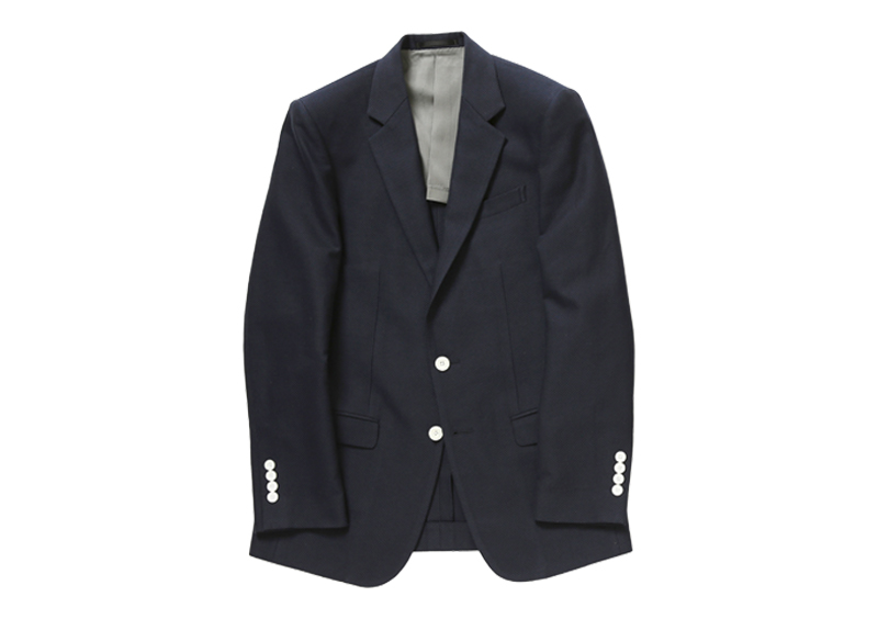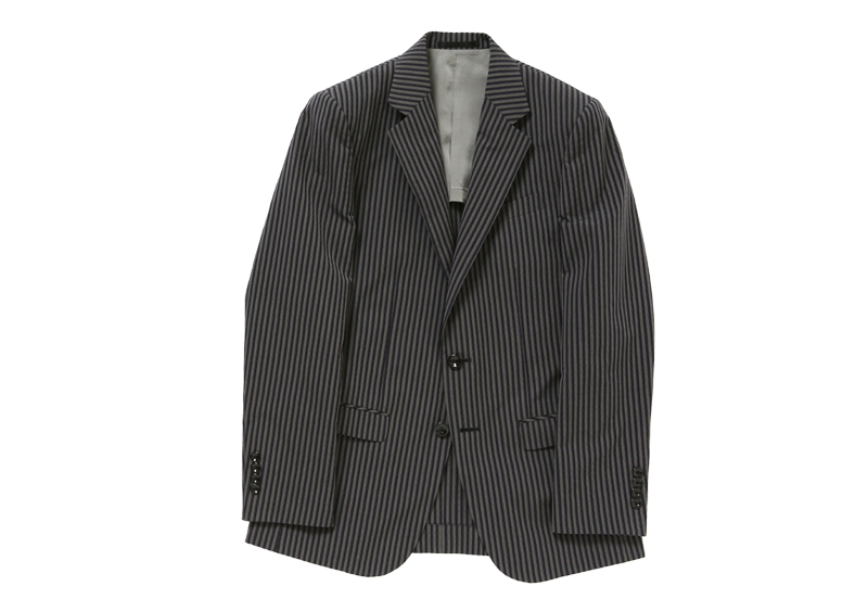 1960年代の〈レノマ〉のアーカイブジャケットから着想を得た、シングルタイプのジャケット。ダブルのタイプと同様に、前身頃はハーフ毛芯を用い、細身のシルエットで作られている。白のボタンを使ったネイビーのものは、コットン素材。カーキのものは、リネン素材。ストライプのものは、コットンシルクの素材。
