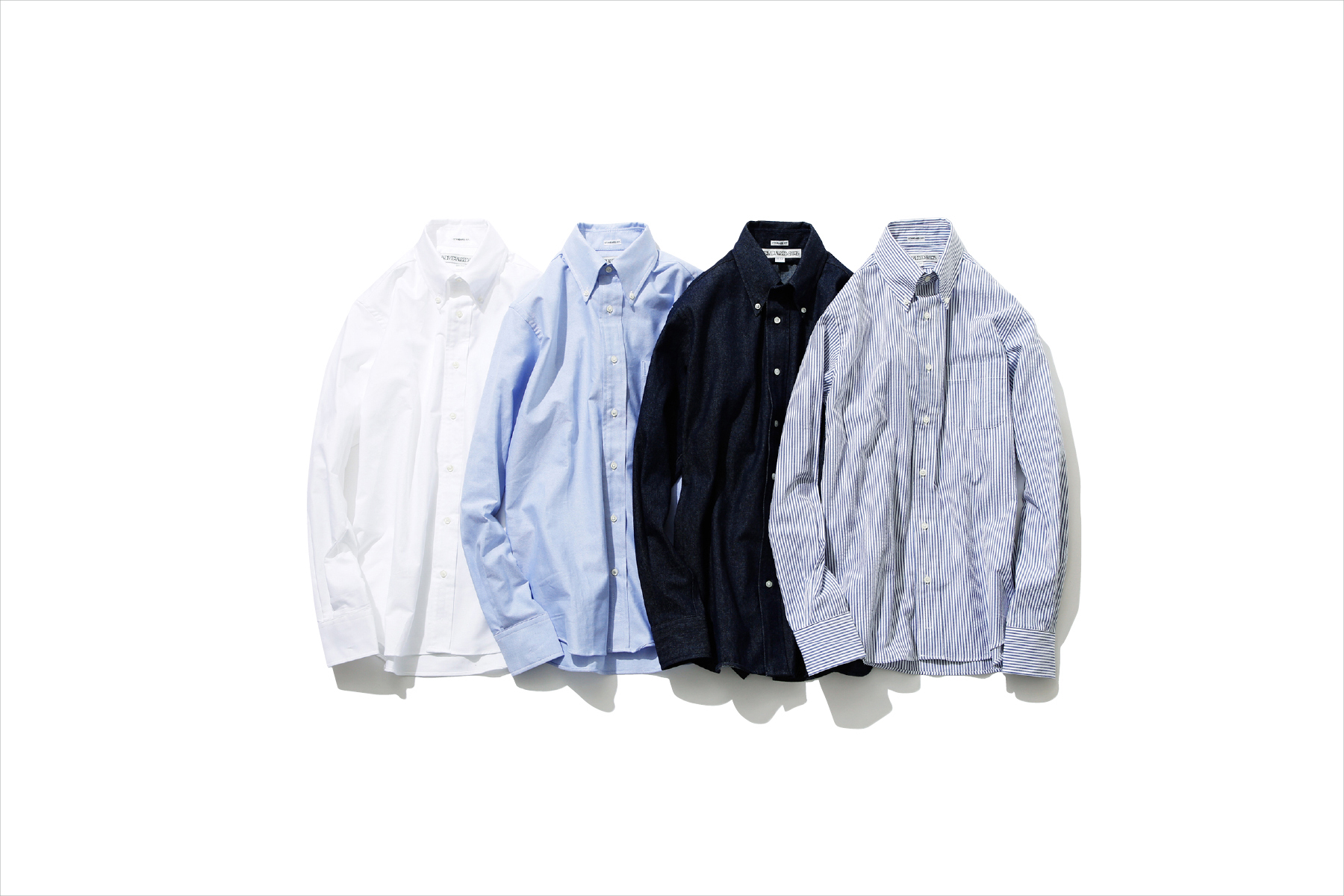 (左から) ケンブリッジオックスBDシャツ2枚 各¥20,000+TAX、シアサッカーストライプBDシャツ ¥23,000+TAX、ヴィンテージデニムBDシャツ ¥25,000+TAX