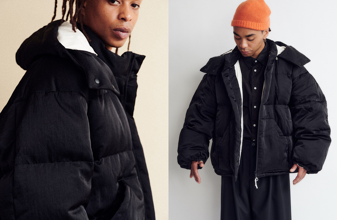 ダウン量が多くボリューミーな「Puffer Jacket」をもとに、今シーズンは新たにフードを追加し、デザインをアップデートしました。ディテールへの配慮も忘れずに、ファスナー、引き手、裏地をオフホワイトの配色にすることで、全体にアクセントを加えました。前ファスナーを開けるとまた雰囲気が変わります。