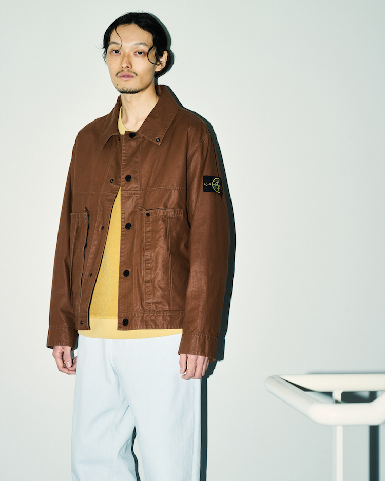 そして、どのジャケットも、生地本来の風合いを活かしながら、軽く、臭わず、ドライタッチとモダンに仕上げています。ファッションの醍醐味は「情緒」と「機能」ですが、総じて両立するのは難しいもの。その理想の形を緻密な二段加工によって実現したジャケットは、〈ストーンアイランド〉のまさに「着るイノベーション」と呼べる仕上がりです。