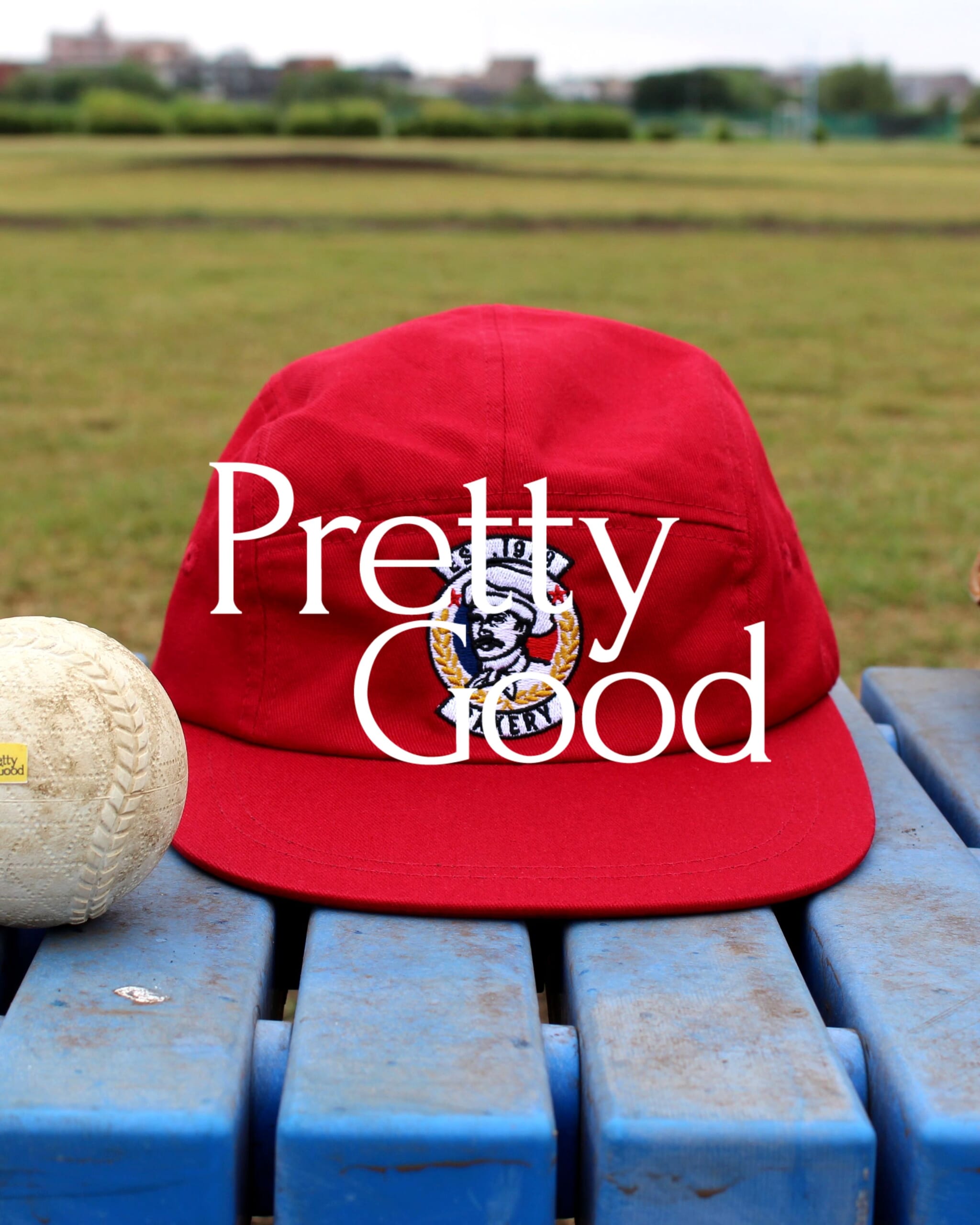 そんなベースボールキャップに注目したのが、「なかなか良い」をコンセプトに首から上のアイテムを提案する〈プリティグッド(Pretty Good)〉。実在しそうな架空の草野球リーグをテーマに、キャップコレクションを完成させました。