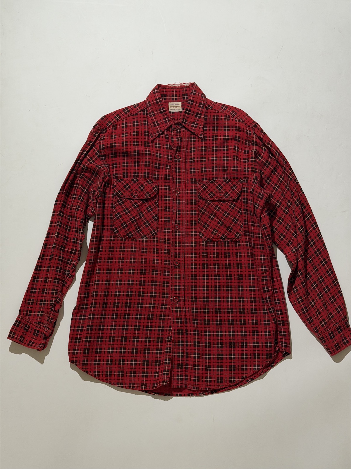 いまから半世紀以上前のシロモノでありながら、ご覧のとおり色は褪せていませんよ。落ち着いた色味のチェックだから、合わせはジーンズも軍パンも何でもござれ。