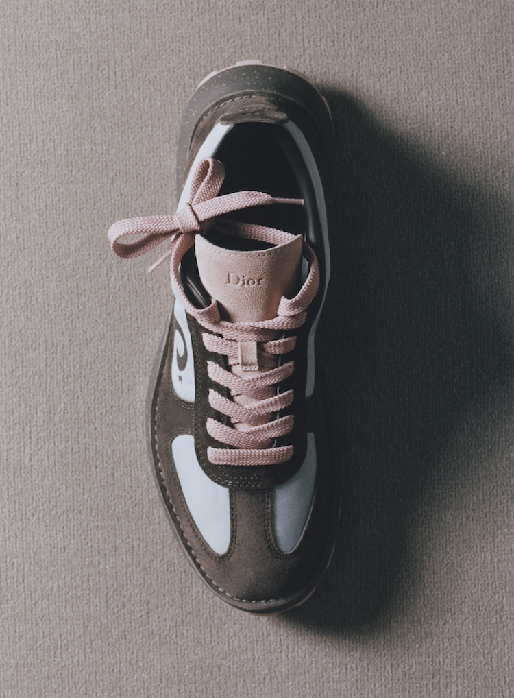 プレスリリースにはかつてのランニングシューズを再解釈したとありますが、そのフォルムを真上から見ると革靴のような趣きもあるから不思議です。考えてみると、〈ディオール〉が大切にするクチュールの精神がそう見せるのかもしれません。