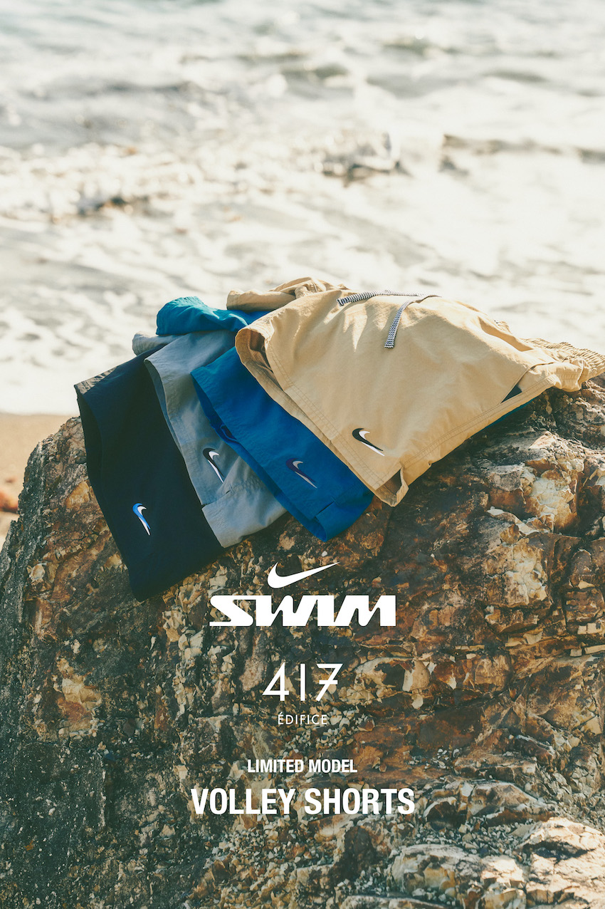 〈ナイキ スイム(NIKE SWIM)〉から、「417 エディフィス(417 EDIFICE)」販路限定のスイムショーツが発売されます。