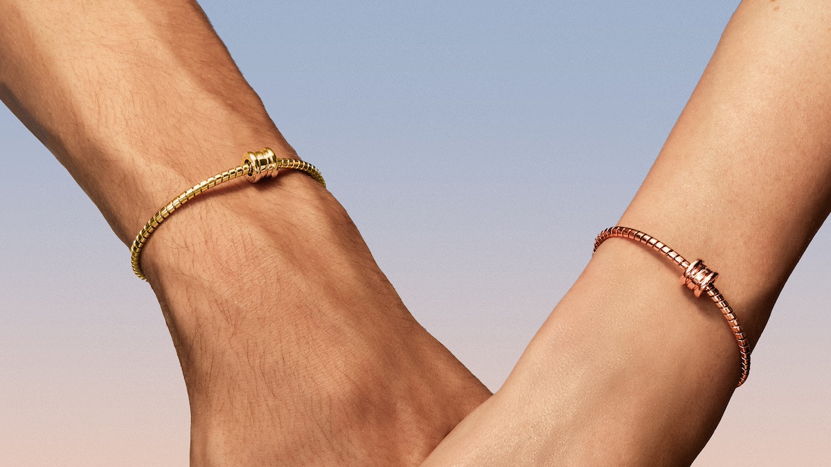 新作のブレスレットは、螺旋状に細く巻いたメタルの輪に付く、「ビー・ゼロワン」のモチーフがクラスプの役割を果たします。