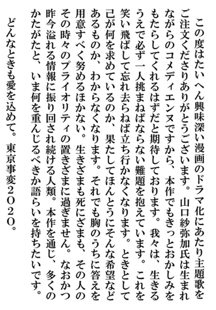 東京事変のコメントからは、ドラマ主題歌に採用されたことについて前向きな姿勢が伺える。